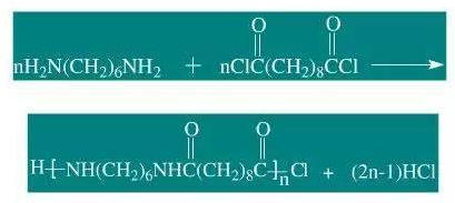如上圖反應方程式所示:PA610通過己二胺 (來自化石原料) 與癸二酰氯縮聚而成;其中,癸二酰氯由癸二酸得到,己二胺由己二腈得到;
